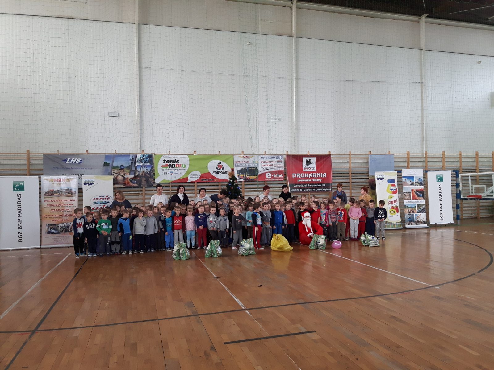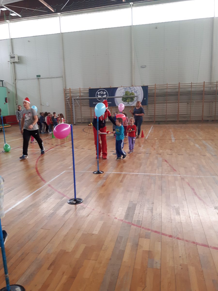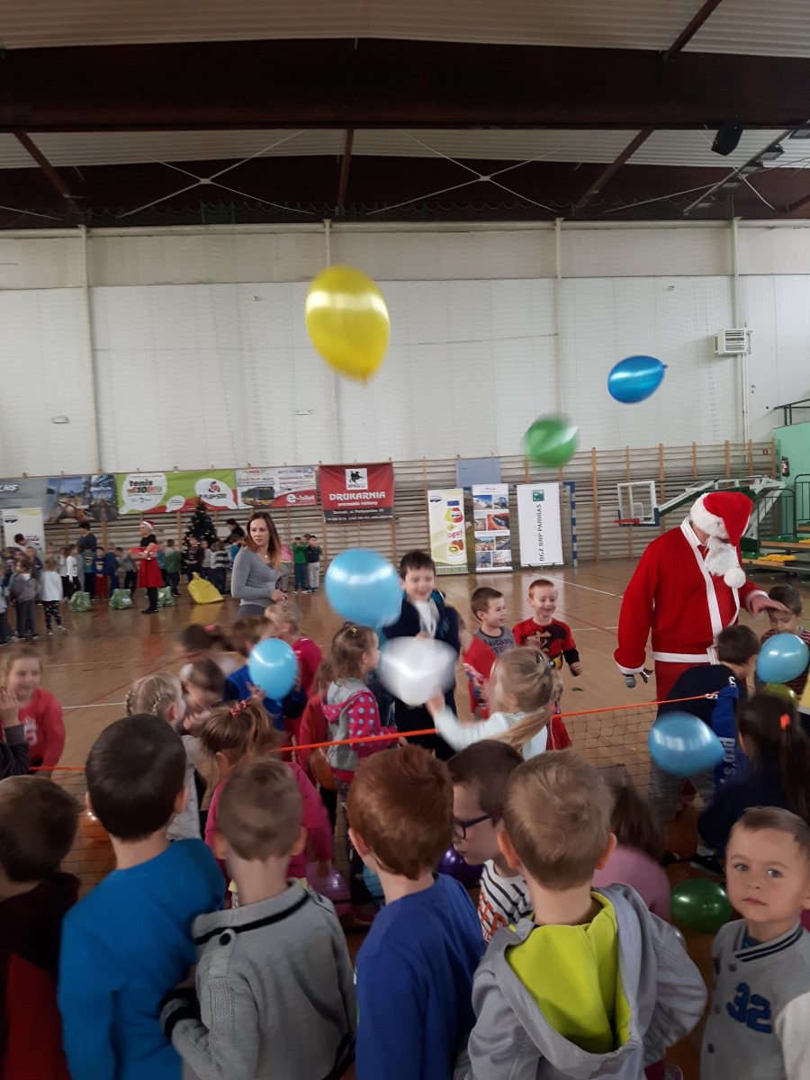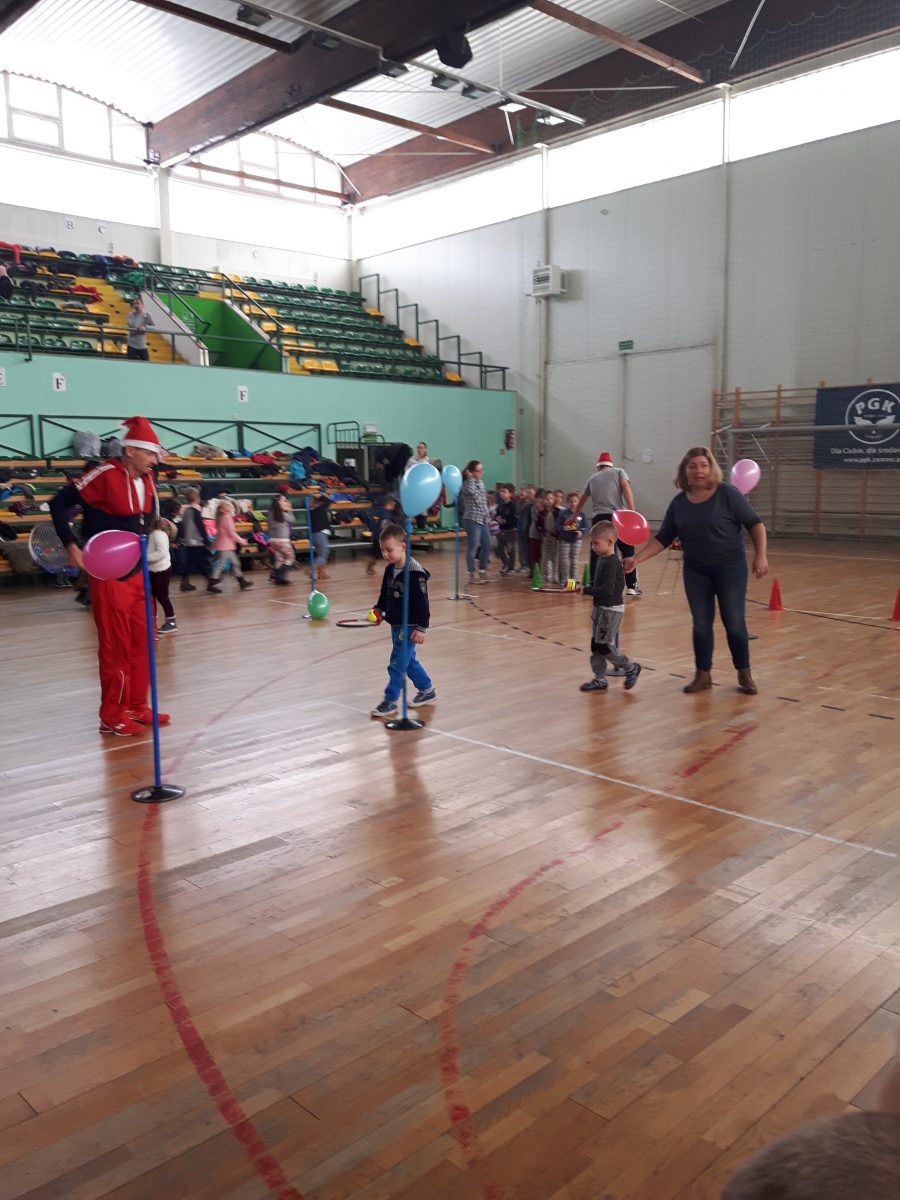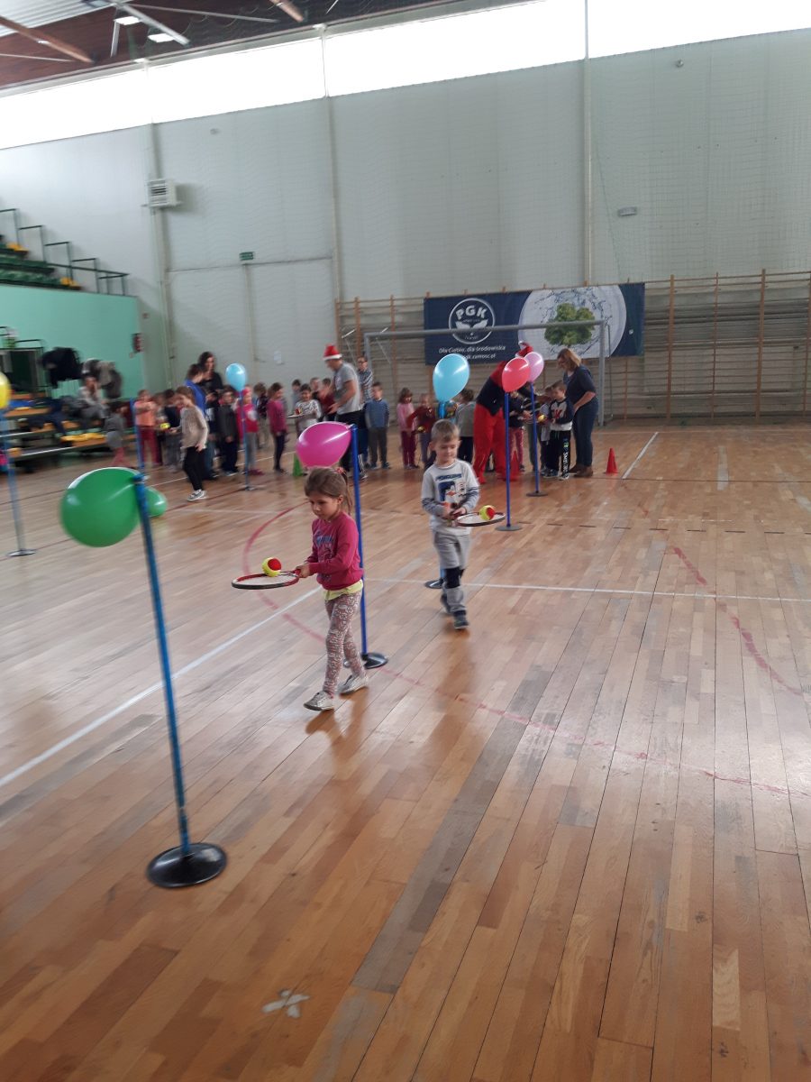7 grudnia dzieci z naszego przedszkola, które uczestniczyły w programie powszechnej nauki tenisa „Tenis 10 ”, wzięły udział w mikołajkowym turnieju, zorganizowanym przez Klub Tenisowy „Return” na hali OSiR w Zamościu. Zabawy sportowe m.in. odbijanie piłeczki tenisowej rakietą do celu, kolorowa baloniada, tor przeszkód były niezwykłą atrakcją dla dzieci. Najważniejszym punktem turnieju było oczywiście spotkanie z Mikołajem, z którym dzieci mogły zrobić sobie zdjęcie i drobne upominki, które Mikołaj wręczył dzieciom.
