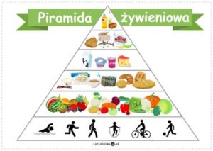 Powiedzcie teraz co trzeba robić aby być zdrowym? Obejrzyjcie piramidę żywieniową i powiedzcie co jest najważniejsze dla naszego zdrowia? (ruch)