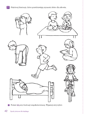 ƒ W zdrowym ciele zdrowy duch – historyjka obrazkowa, zabawa edukacyjna z kartą pracy.