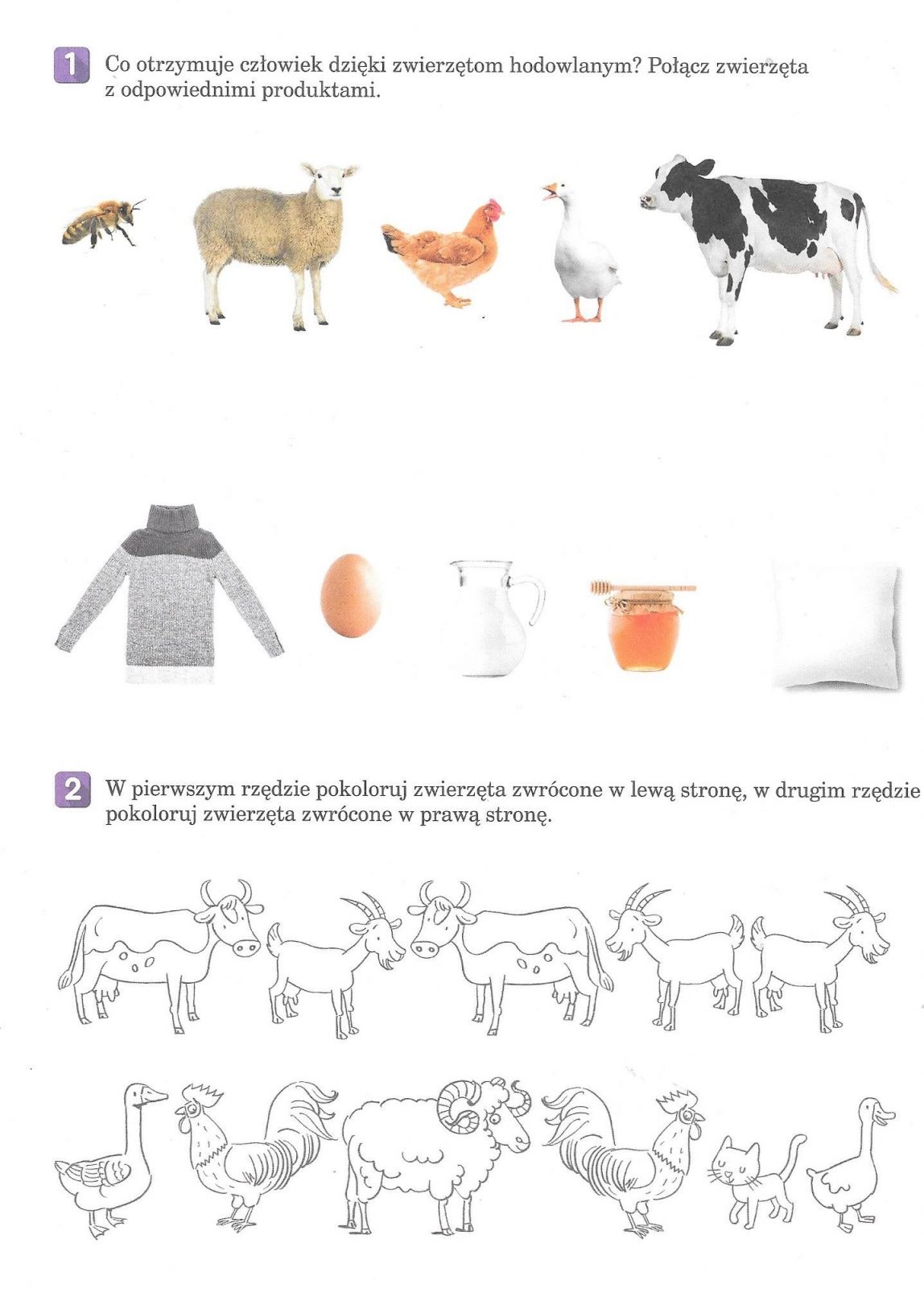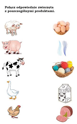 Wypełnijcie kartę pracy – połączcie zwierzęta z odpowiednimi produktami.
